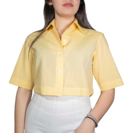 We Made the woman shirt, entirely by hand from the cut to the finishing touches such as the stitching of the neck, the armhole to the hand-embroidered buttonholes, and hand-sewn real mother of pearl buttons with “punto giglio”.