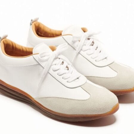 Their fresh look is heightened by the white tumbled leather, a material that showcases the perfect balance between classy and informal.