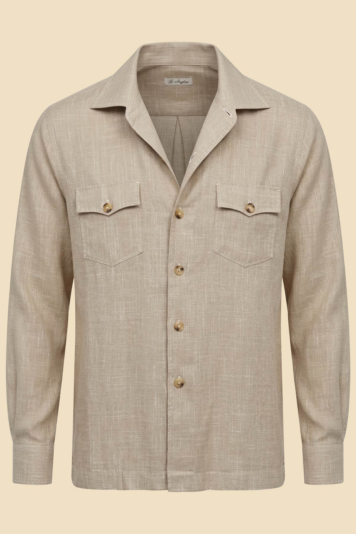 The sahariana, crafted with a relaxed Capri collar and finished with two chest pockets, blends refined utility with effortless Italian elegance. Made in bamboo yarn, it offers a light and distinctive interpretation of a timeless garment. Deluxe Craftsmanship. Gently infused with our signature fragrance, Acqua di Ginosa. Delivered in our signature G. Inglese logo box.