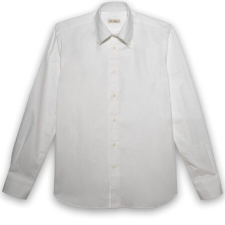 Handmade in Ginosa, it’s tailored from warm, velvety brushed cotton with vertical white stripes that elongate the line. The classic collar with removable stays remains precise with or without a tie; genuine mother-of-pearl buttons, English seams and hand-finished buttonholes speak to our craftsmanship.