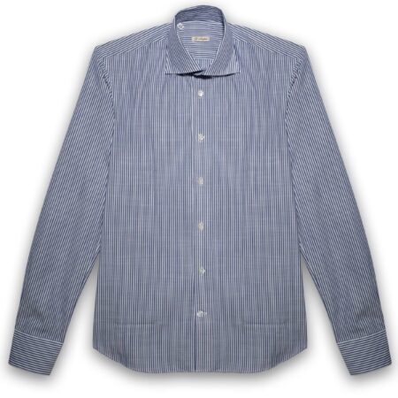 Classic bespoke shirt in poplin cotton, finished with 25 handmade steps. Timeless elegance and 100% Made in Italy quality.