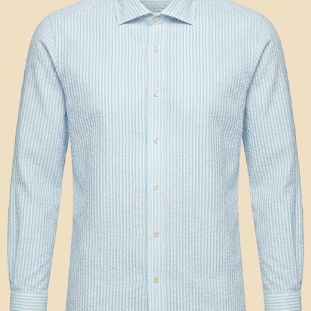 Light Blue English Leno Cotton Micro-Pattern Shirt