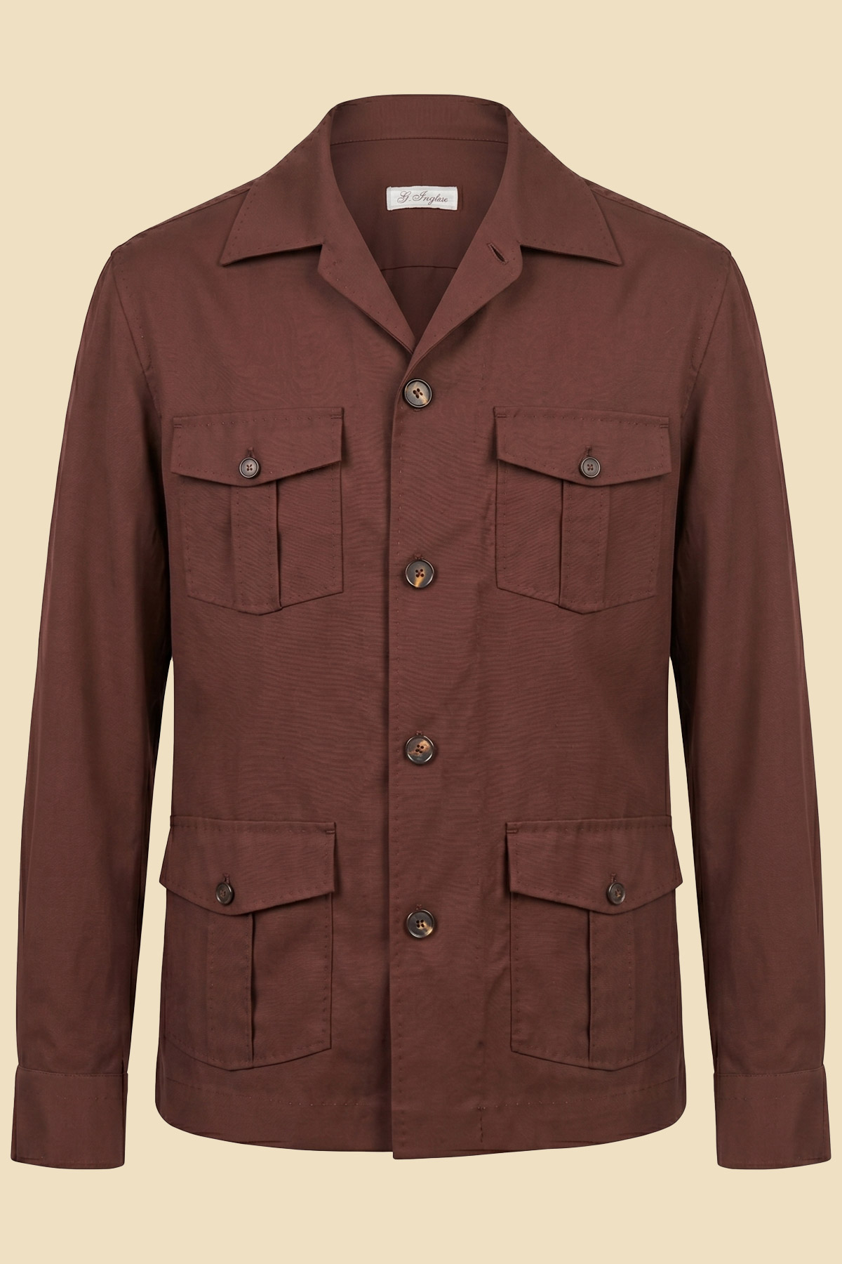 The sahariana, crafted with a relaxed Capri collar and finished with two chest pockets, blends refined utility with effortless Italian elegance. Made in bamboo yarn, it offers a light and distinctive interpretation of a timeless garment.